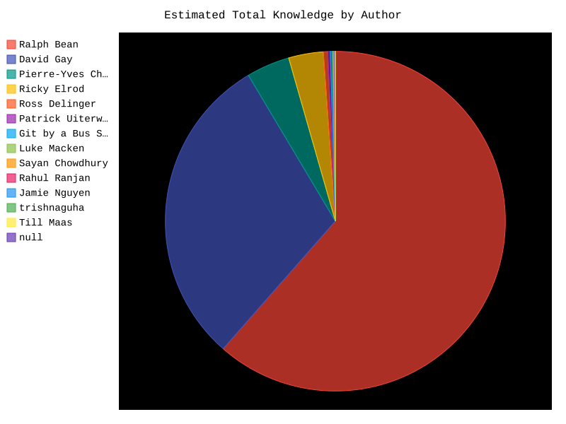 Overall, Bean has been the greatest (and most consistent) contributor to the project.